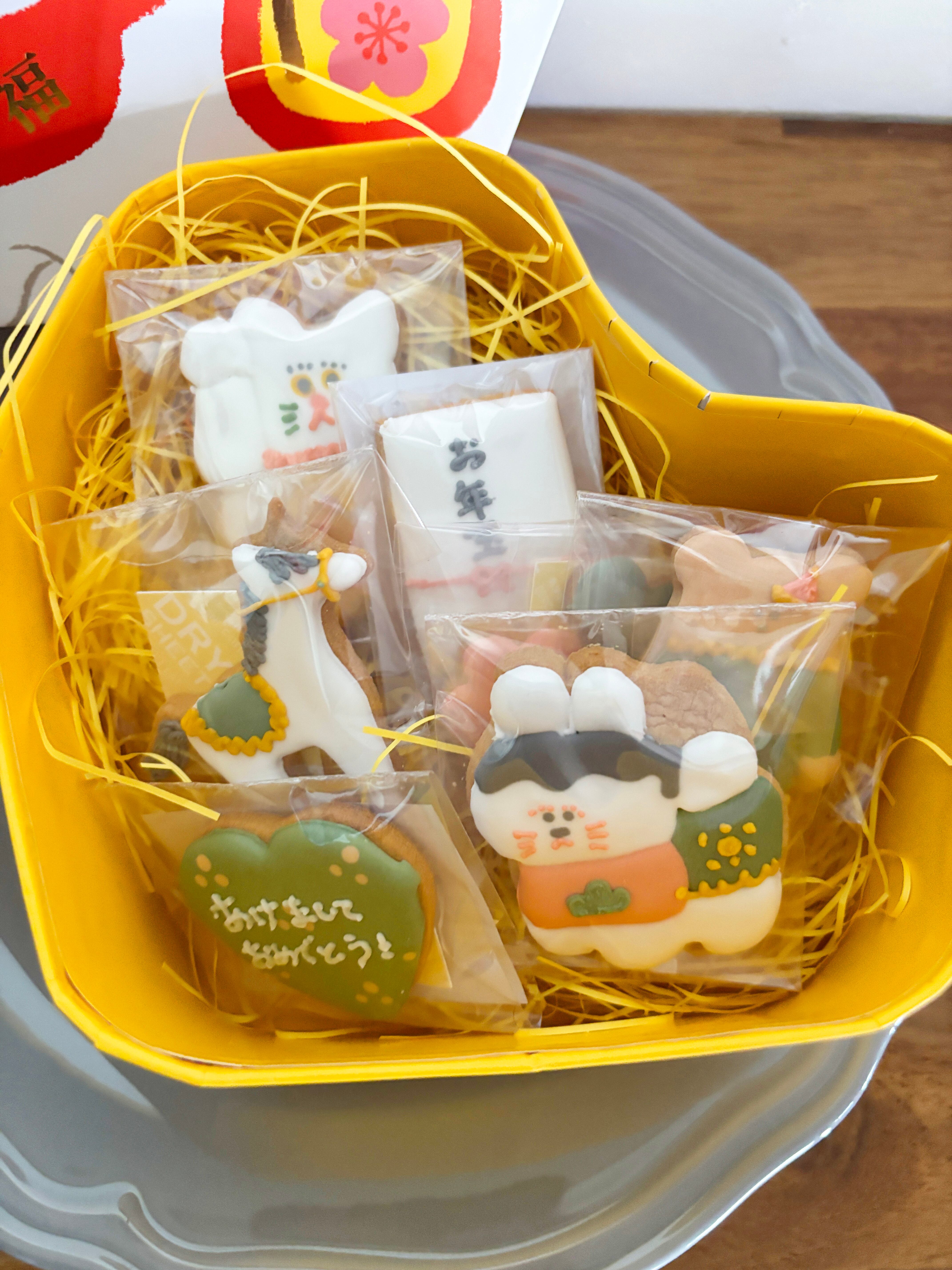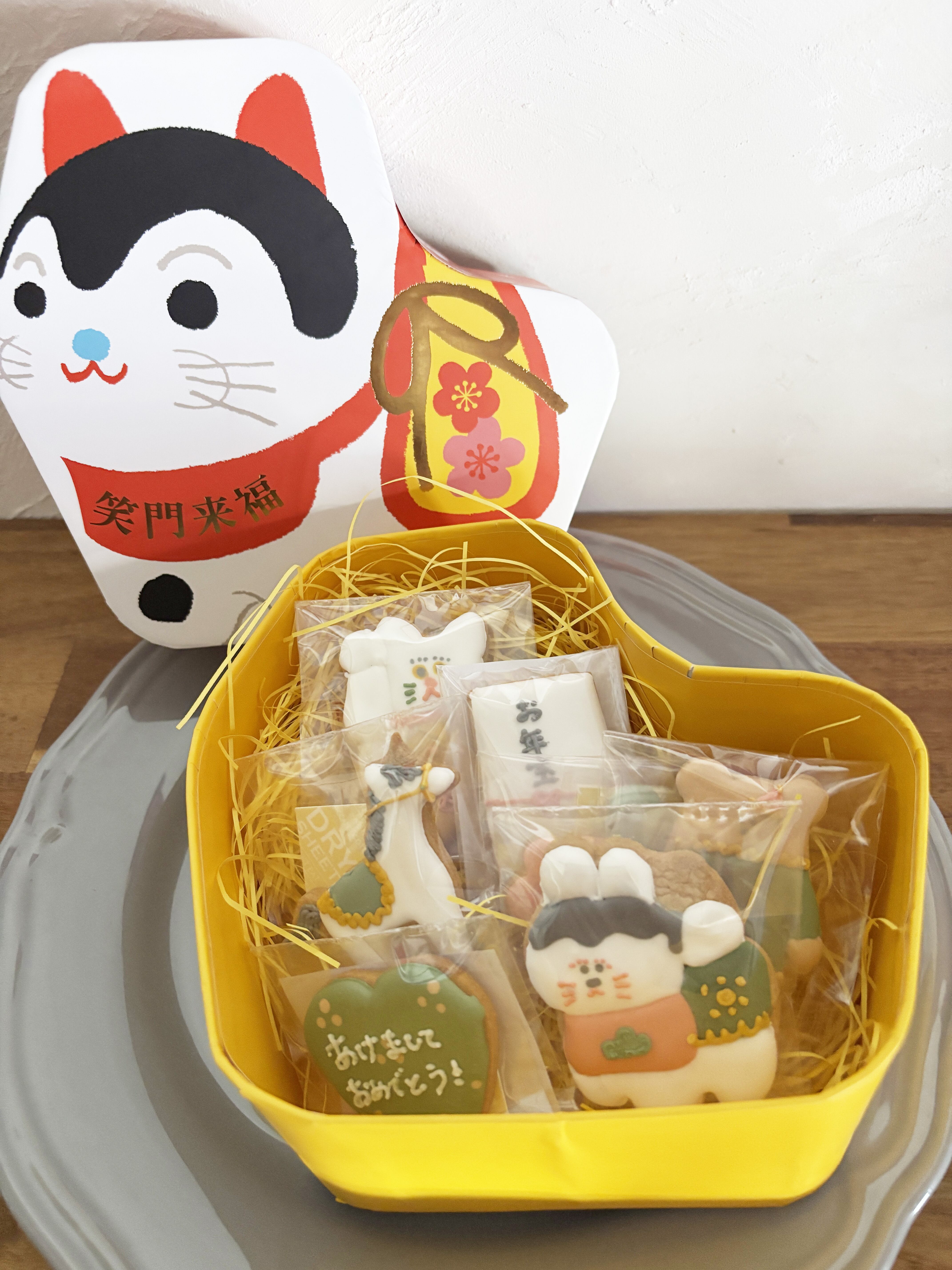 かわいい狛犬さんBOXにはいった新春くっきぃ。