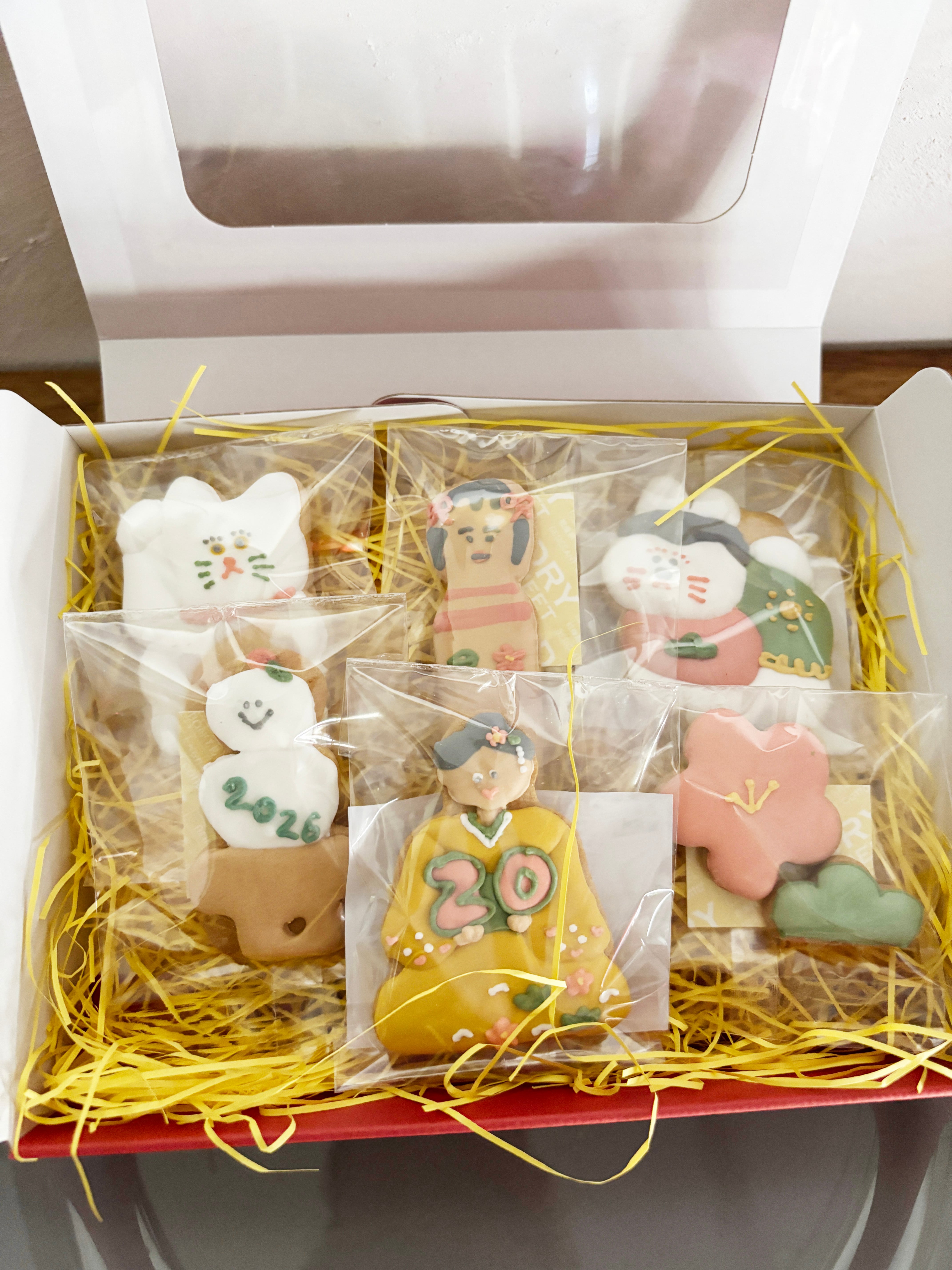 アイシングクッキー:小麦粉(北海道産)、粉砂糖、バター、全卵、卵白、