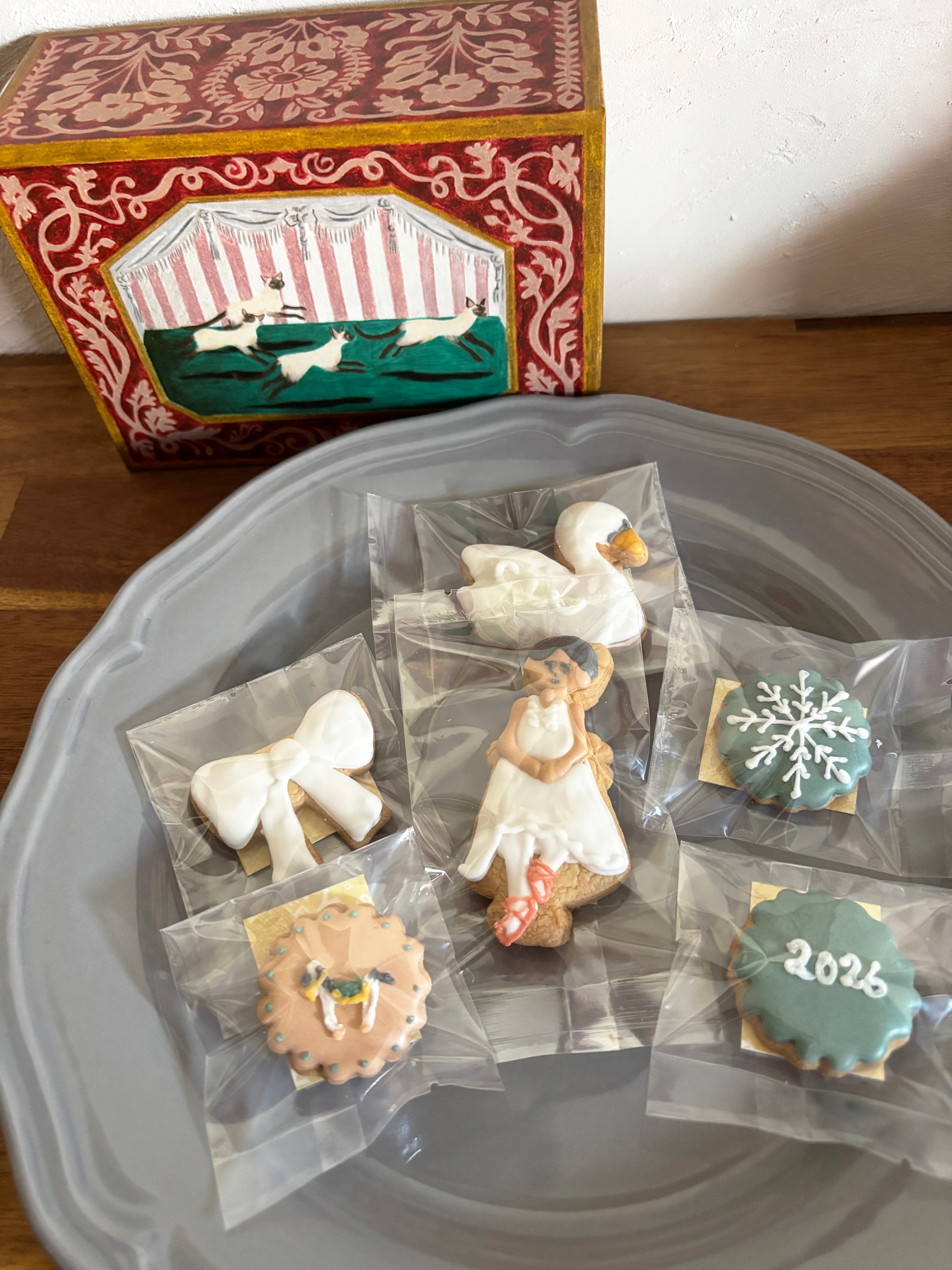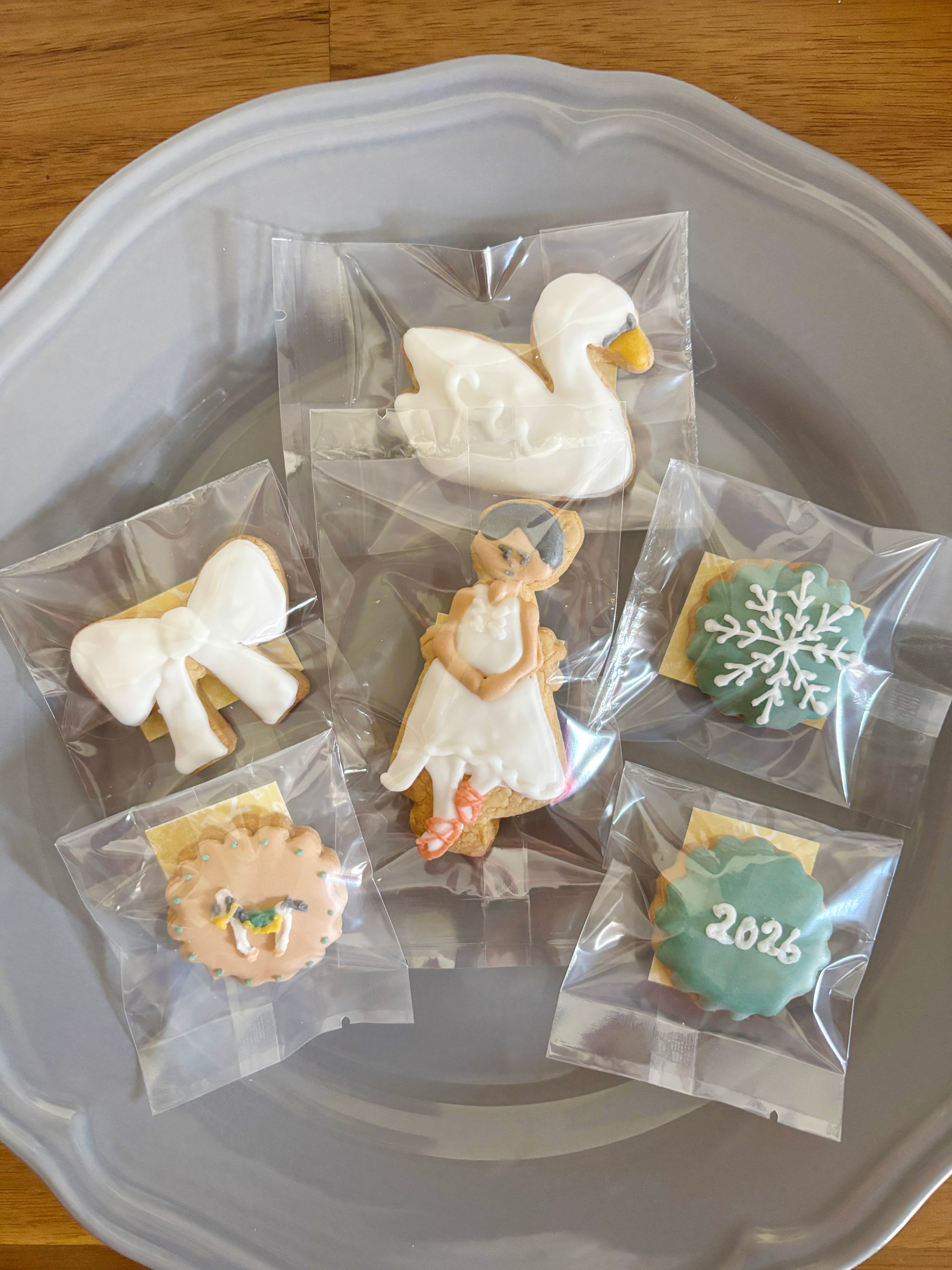 アイシングクッキー:小麦粉(北海道産)、粉砂糖、バター、全卵、卵白、
